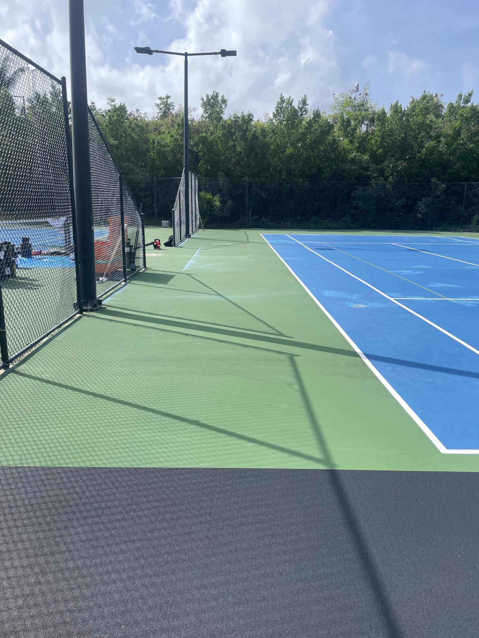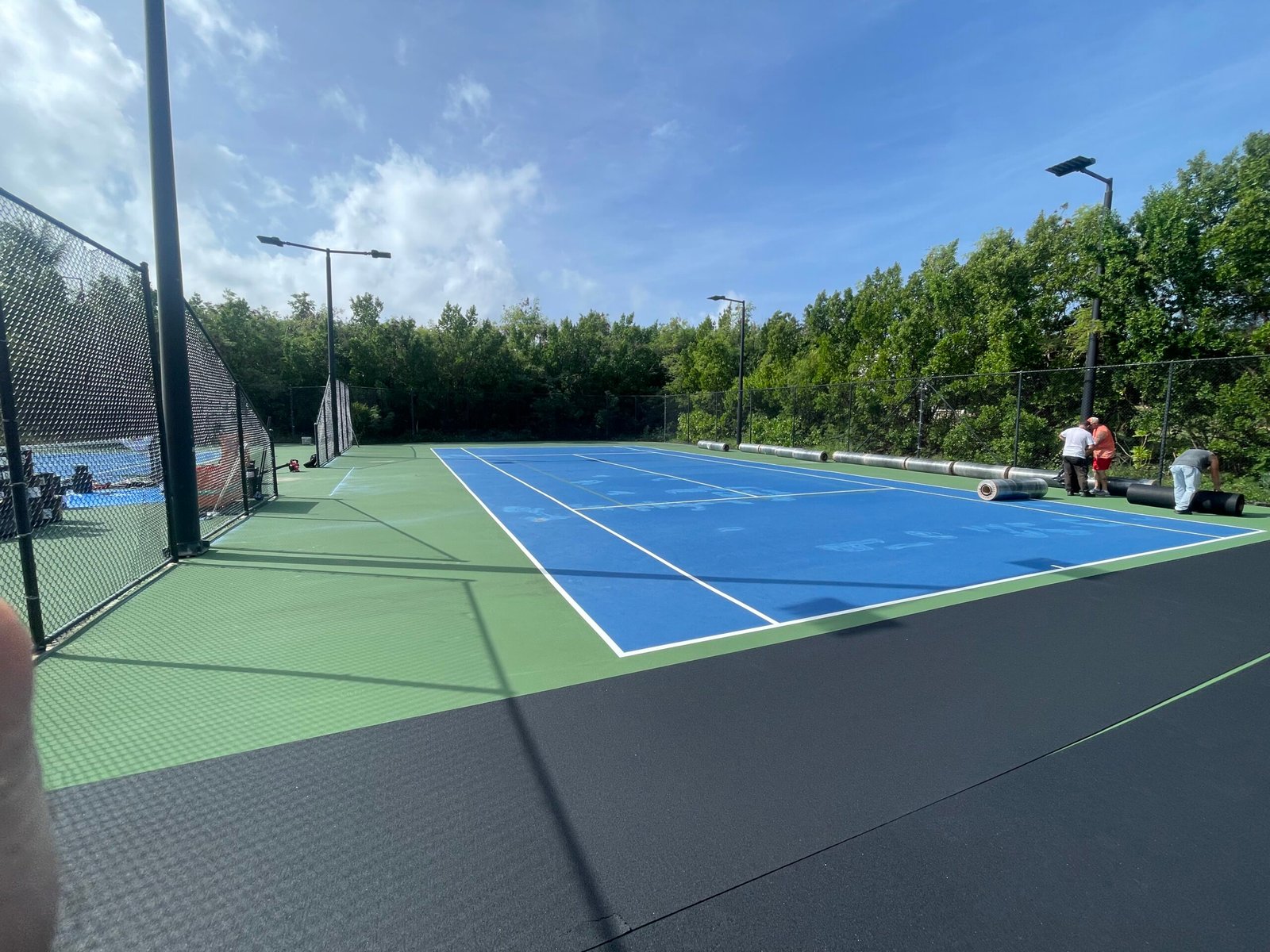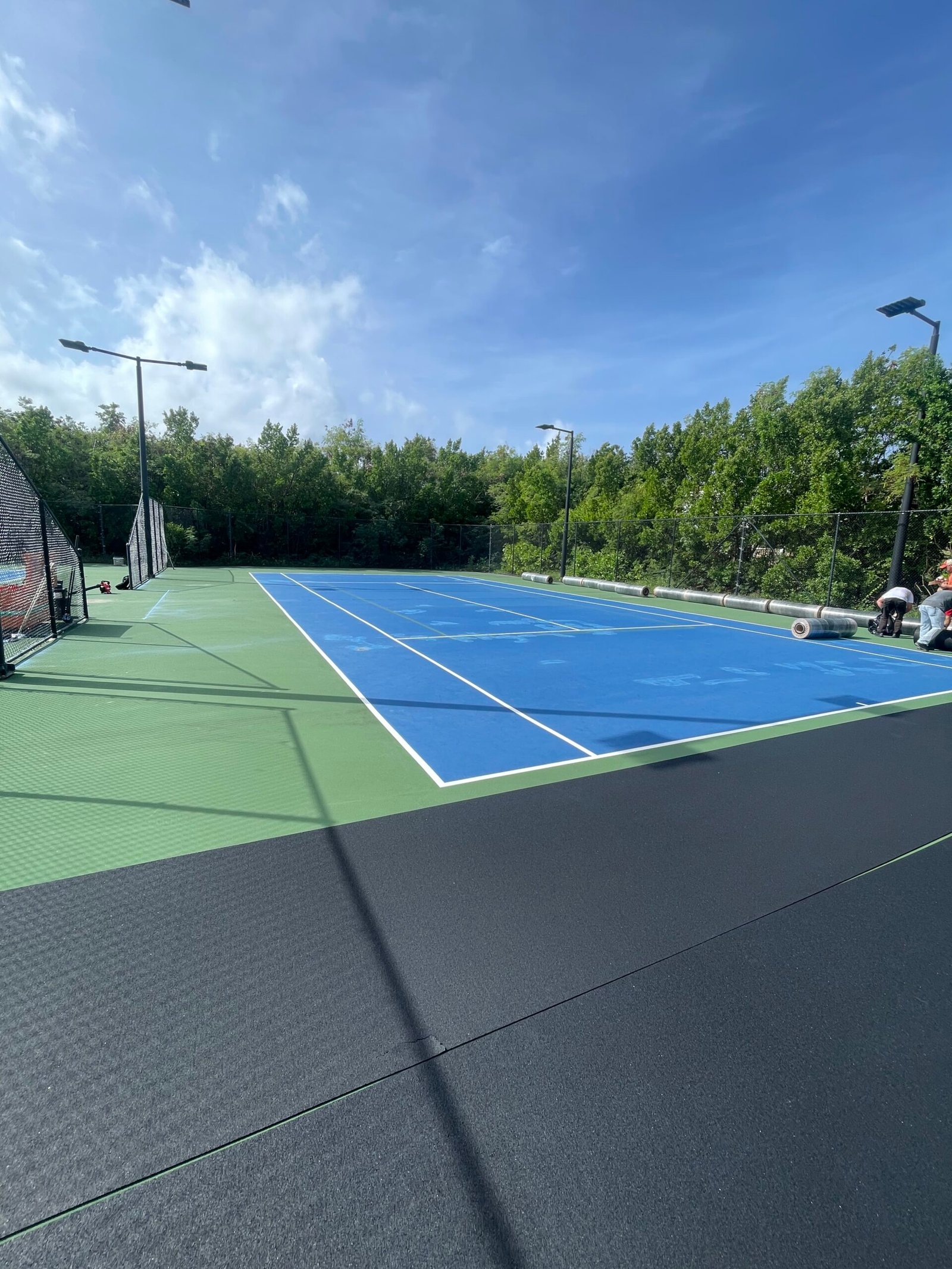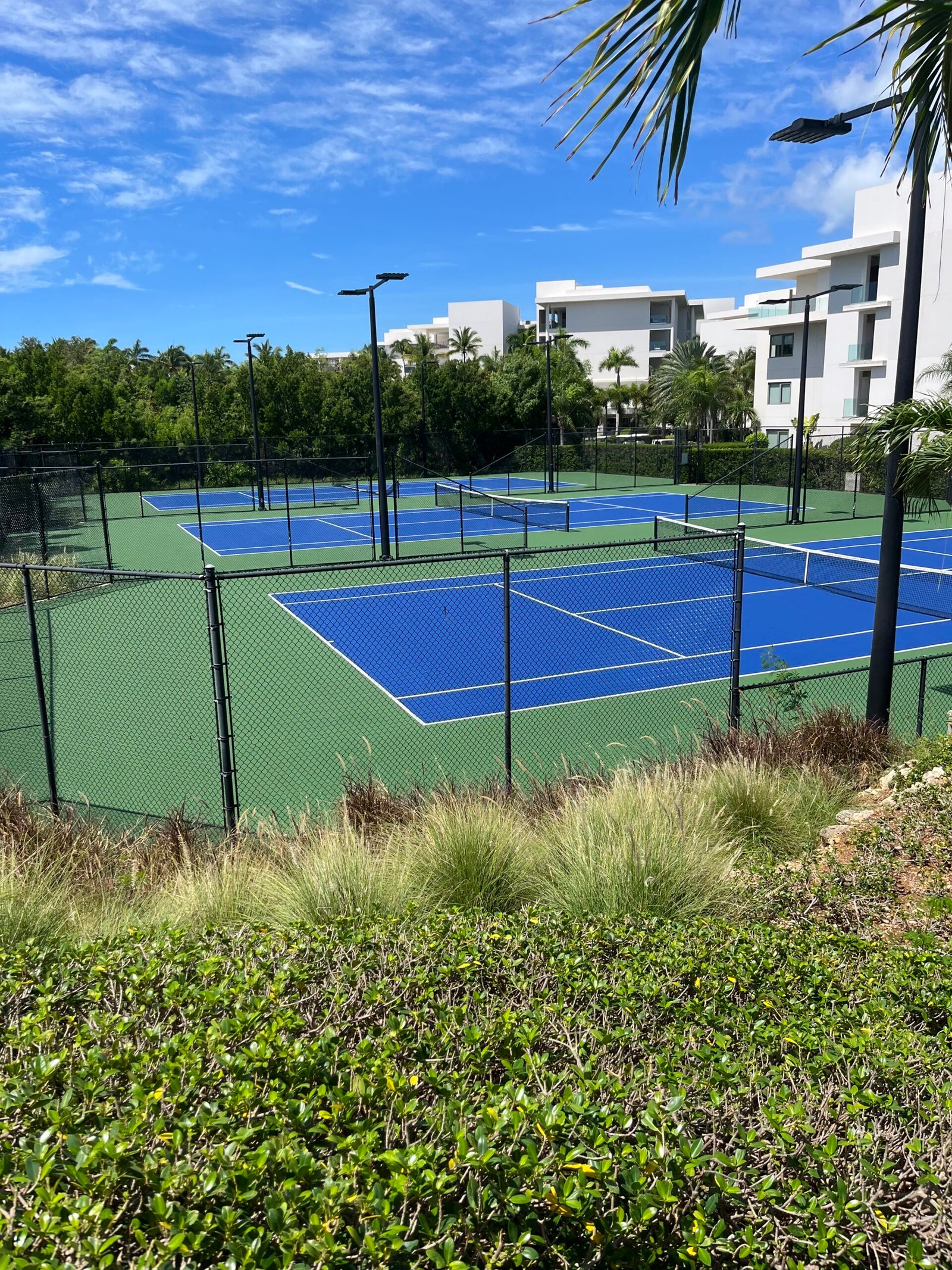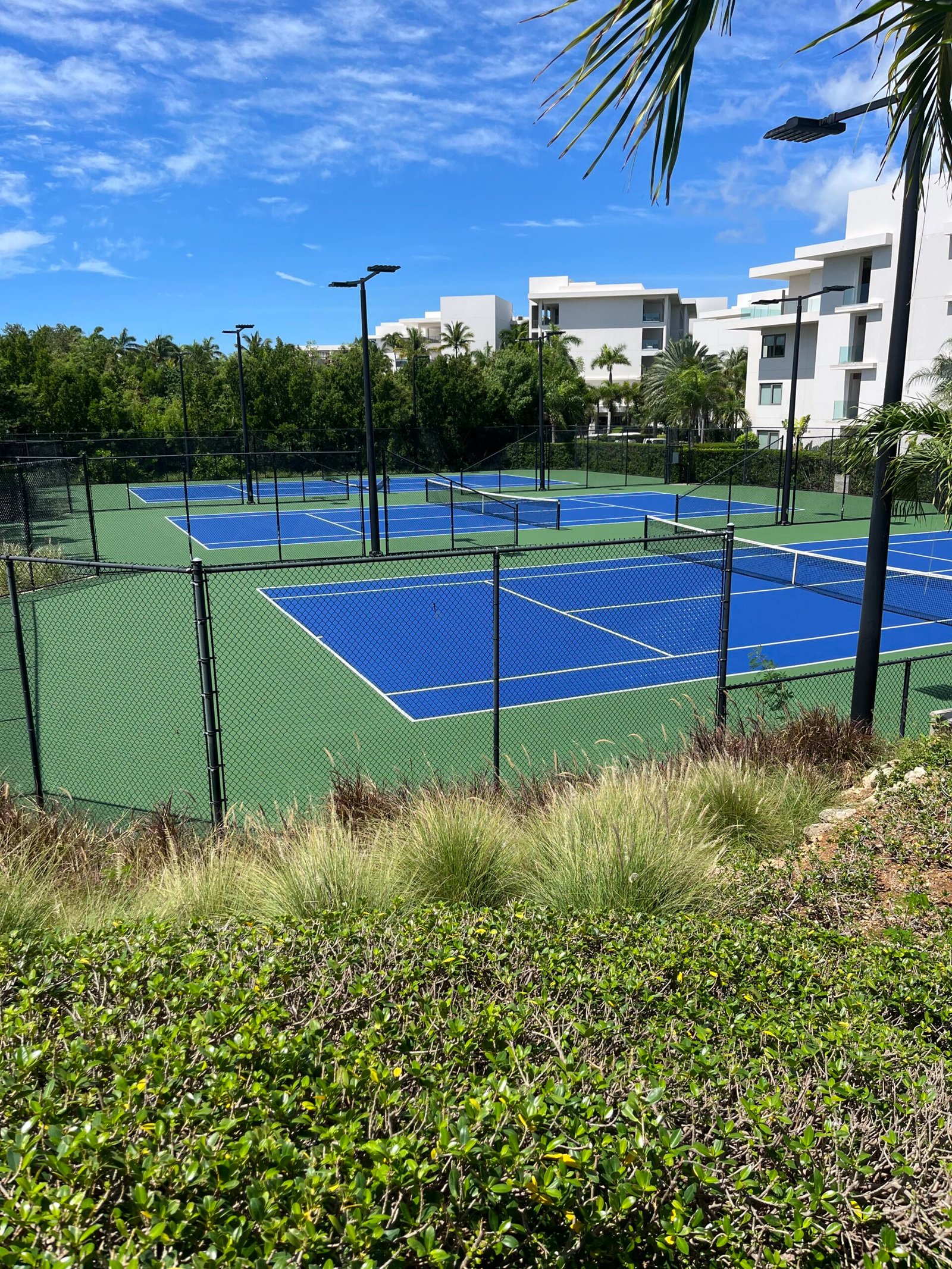 The team integrated the iconic blue-and-green aesthetic that complements the resort’s landscape, resulting in a sleek, tournament-quality pickleball complex. Premium acrylic surfacing systems were applied for durability and performance in the tropical climate.